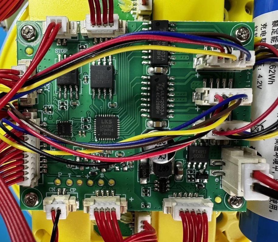 To test this theory, I decided to hook a logic analyzer up to the various inputs. To keep myself sane, I replaced the original all-red-wired connector with two sets of color-coded custom ones broken out to a breadboard with two rows of headers between them. This setup would facilitate both passive analysis and active signal manipulation simultaneously.