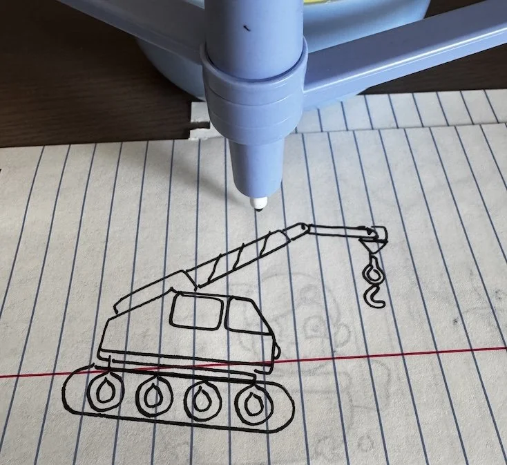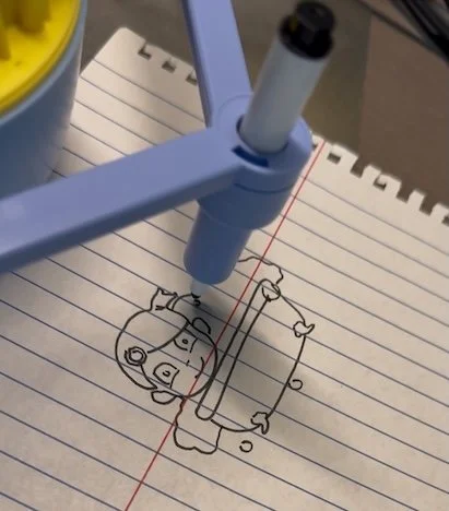 With the card held in place, I pushed the button to initiate drawing. The robot started singing and, surely enough, drew this image: