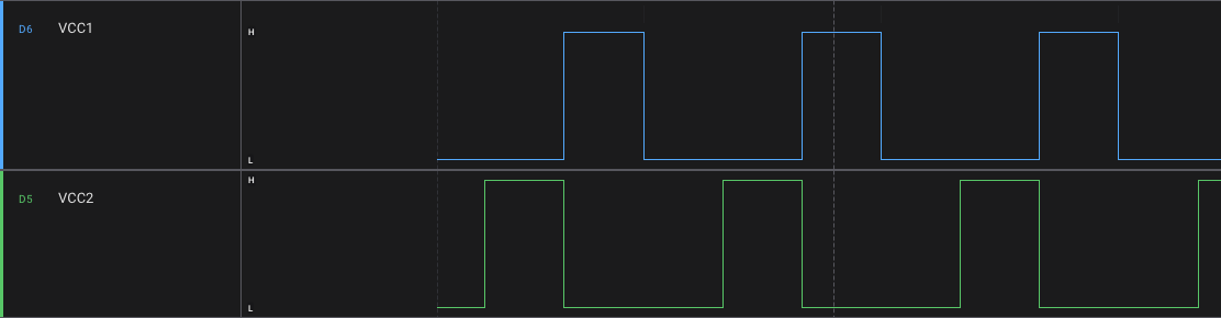 Sure enough, the VCC lines alternated at a regular cadence, lending massive credibility to the multiplexing theory.